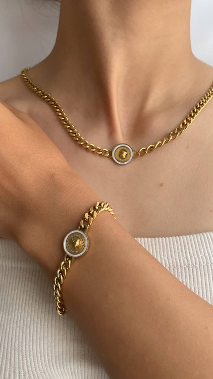 گردنبند و دستبند ورساچه گلد تمام استیل